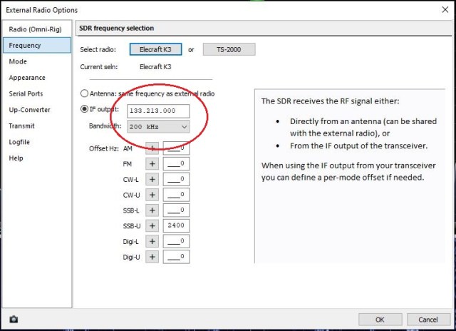 Today I decided to try an SDR as a Panadapter using the IF output of the K3. This is clearly nothing new, there are many different setups described on the Internet. A quick online search did not find the same hardware as I’m using so this post may be of use to you, rather than just being a reminder for me at some point in the future. 🙂