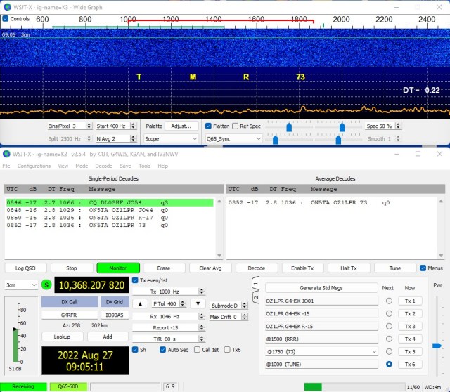 The first two requirements were not ideal but should get me close 🙂 the third was fine as the K3 was able to do full Doppler tracking in 1Hz increments.