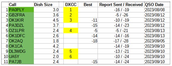 10GHz Small Dish EME Project – First Initials