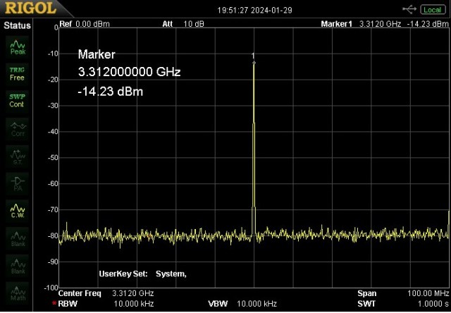 The output from the ADF4351 looked to be okay. The phase noise is still to be checked.