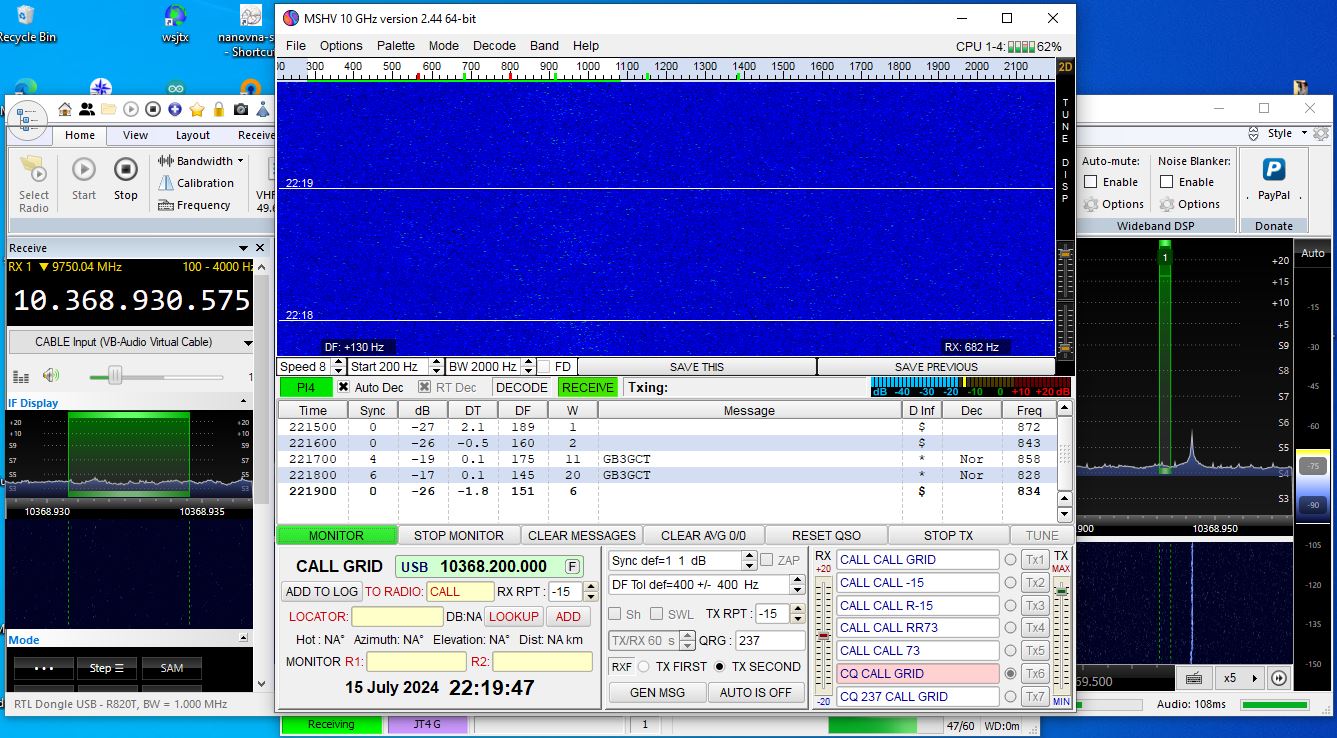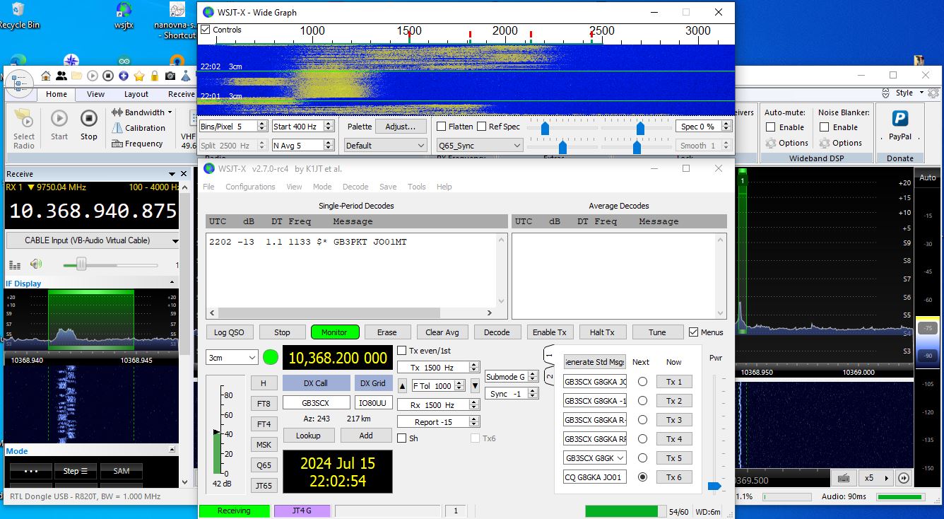 Currently the SDR I’m using for these tests is not ref-locked and there’s no CAT connection between the laptop and FT-818. The next thing is to implement both which will help when looking for weak traces and measuring the effects of Doppler on a signal. My 10GHz operation is still very much WIP. 🙂