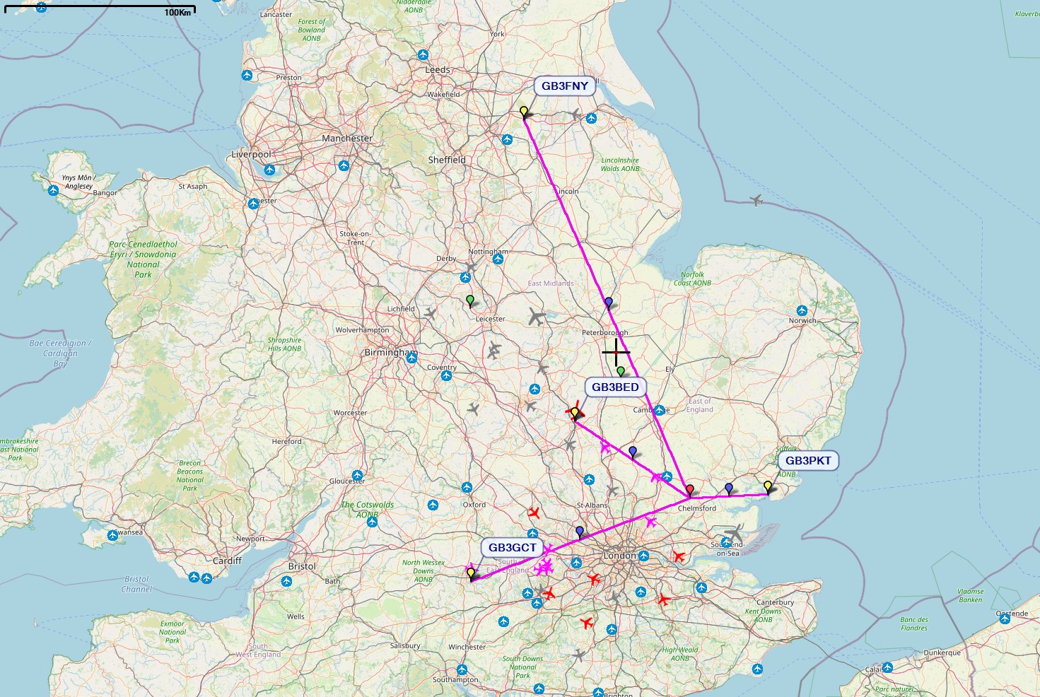 For those that may not know where these beacons / places are located in the UK the photo below shows their positions in relation to my home QTH.