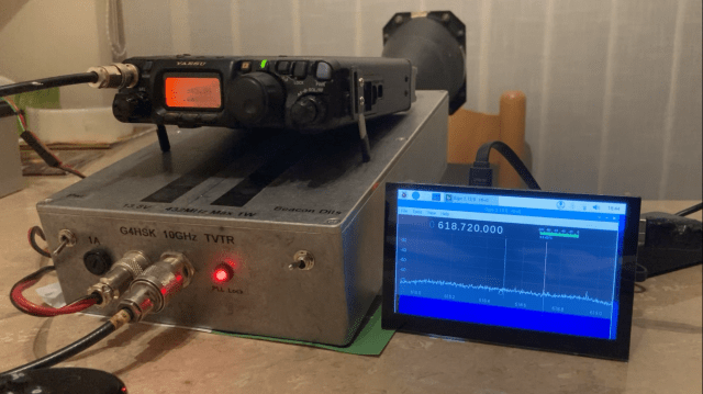 Since completing my 10GHz /P TVTR I have been using it indoors monitoring beacons via rain scatter (RS). Being able to “see” what’s happening on the band is extremely useful. Not only does it help find the signal and peak the dish / horn but it also gives an indication what else might be happening elsewhere on the band while pointing in this direction. You might immediately think, dish antenna, narrow beam width, not the greatest of activity on 10GHz, you’ll be lucky to see anything other than the station you’re peaked on. Well, yes and no. Most of the time that’s probably true but if there’s RS and you’re pointing at the rain cell it’s possible to receive signals from almost any direction, even 180 degrees off your dish heading (back scatter). See here.