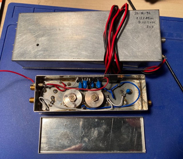 The G4DDK-004 module was completed, aligned and fully working (dated June ’96, as shown in one of the photos below). There was a small group of us building the G3WDG Transverter. One of the group was living very close to me and we were both working together to get our receive converters working. Sadly he became ill and went SK before we completed them. As a result, my partly built kit sat in a box untouched until last year when another of our group sadly went SK! He and I had been reminiscing and we had talked about these modules and how he had aligned and measured the output of my LO kit. It was then I decided that I really should finish what we had started together all those years ago.
