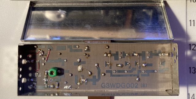 Surprisingly the board and tin box enclosure were in very good condition as were the filters mounted on the opposite side of the PCB. The PCB tracks were all tarnished and needed to be carefully cleaned with a glass-fibre pen. Once this was done, I soon picked up from where things had been left off all those years ago, and continued on, following the excellent build instructions. It all went together without any issues.